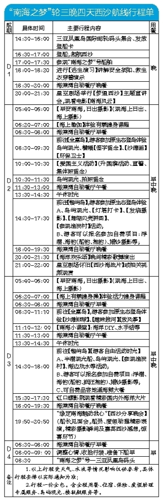 “南海之夢”輪由中國旅游集團有限公司、中國遠洋海運集團有限公司和中國交通建集團有限公司合資設(shè)立的三沙南海夢之旅郵輪有限公司持有經(jīng)營?!叭齺?西沙”航線也成為中國境內(nèi)首個海上游輪復(fù)航航線。