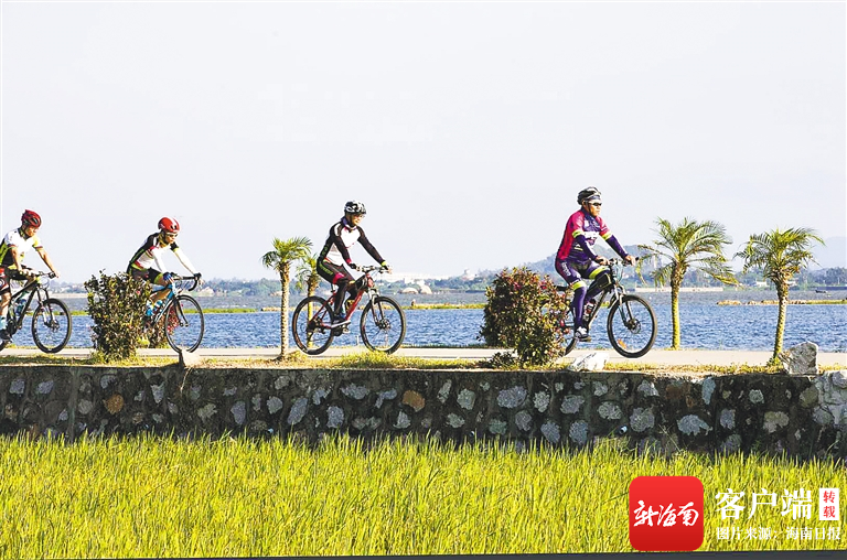 市民游客在萬寧小海邊騎行。楊師忠 攝