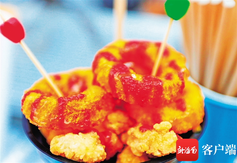 “這是芒果腸粉,這叫甜薯甩,都是瓊海涼爽系列。”12月30日下午,海口天氣雖然降溫了,但仍然是暖陽天。在海口市金龍路上邦百匯城廣場,數十個小吃展位前匯集了眾多食客,展位經營者一邊忙著加工小吃美食,一邊給客人介紹著瓊海的特色小吃。