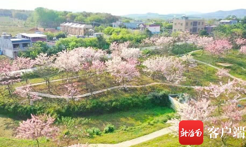據悉,藍洋櫻花樂園位于儋州市蘭洋鎮,為海墾旅游集團旗下共享農莊建設項目。該項目從廣東引種1000多株櫻花樹,建立了占地100多畝的櫻花樂園。經過精心養護,今年九成以上的櫻花樹盡數開花綻放,一簇簇花絮點綴枝頭,吸引了附近的民眾前來觀賞拍照。