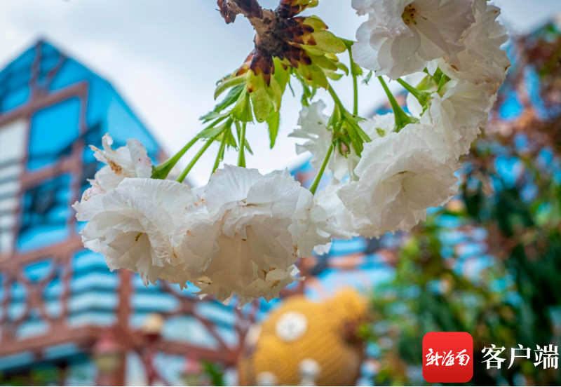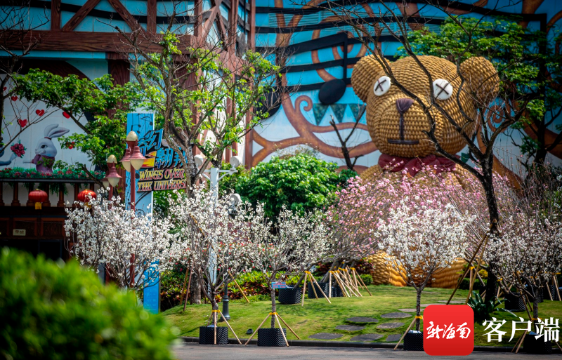 海口長影100環(huán)球奇幻樂園內(nèi)綻放的櫻花掛滿枝頭。記者 劉洋攝