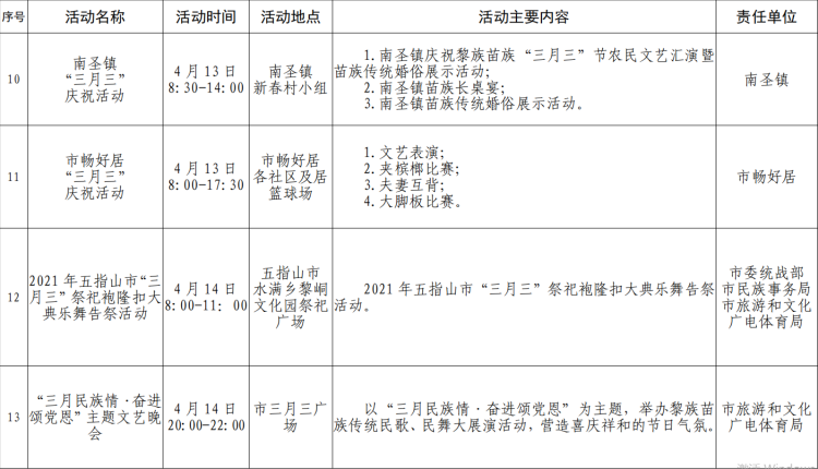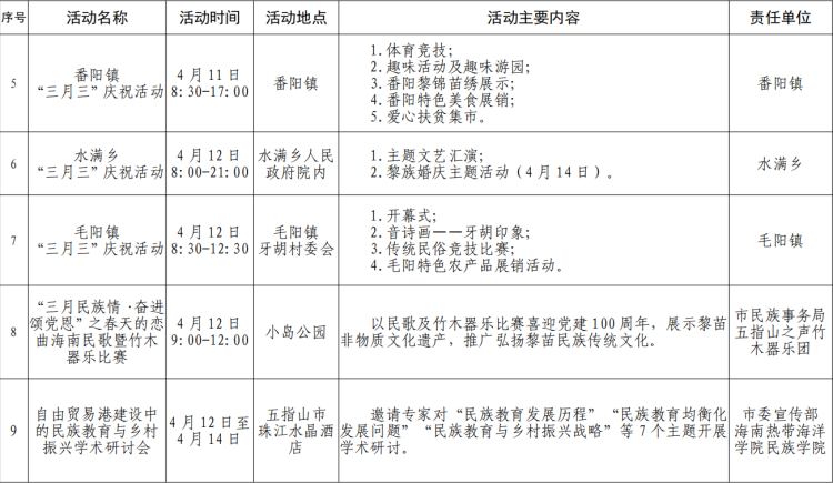 新海南客戶端、南海網、南國都市報3月24日消息(記者 石祖波)農歷三月三即將來臨,2021年“黎族苗族傳統節日三月三”系列活動暨辛丑年祭祀袍隆扣大典將上演。記者從五指山市相關部門獲悉,今年農歷三月三,五指山市將舉辦辛丑年祭祀袍隆扣大典、文藝晚會等系列活動。此外,五指山市各鄉鎮也將舉辦趣味民俗活動、海南民歌暨竹木器樂比賽等活動,迎接廣大市民游客到來。