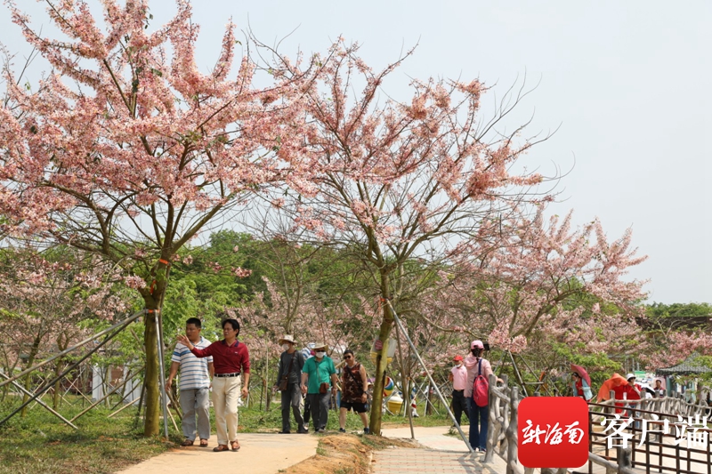藍洋櫻花樂園位于儋州蘭洋鎮,當下正值櫻花綻開季節,該樂園內500多畝熱帶櫻花綻放枝頭,吸引廣大游客市民前來觀光。此次旅游文化節將橫跨整個熱帶櫻花花期,時間從3月持續至5月。