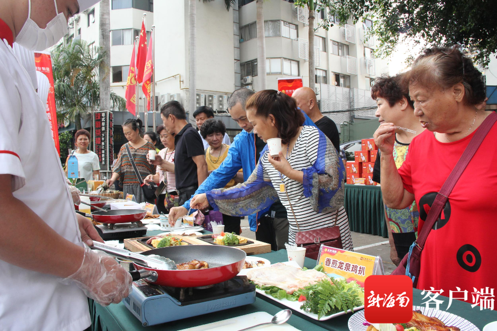 在海南龍泉集團戶外美食展現(xiàn)場,市民、游客品嘗龍泉美食。記者 吳興 攝
