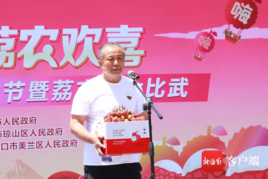 活動現場,10位“荔志叔”身穿火山荔枝主題文化T恤、手拿特色小道具,分別登臺展示自家種植的優質荔枝,用登臺“走秀”、個性化“比武宣言”的方式,上演了精彩熱鬧的海口“荔志叔”風采秀,分享荔枝豐收的喜悅,展現新時代海口“新農人”風采。