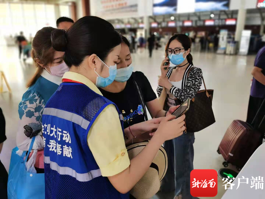 工作人員協助旅客辦理機票退改簽。三亞機場供圖
