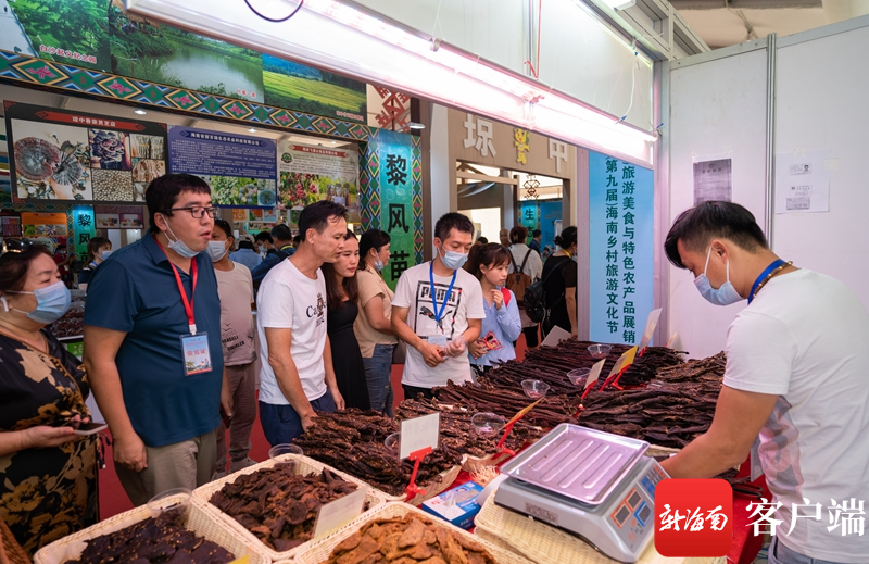 在開幕式現(xiàn)場,海南(瓊中)旅游美食與特色農(nóng)產(chǎn)品展銷會作為活動一部分,展示了瓊中及海南各市縣特色鄉(xiāng)村旅游景區(qū)、景點、鄉(xiāng)村特色食品、特色旅游商品、助農(nóng)產(chǎn)品、土特產(chǎn)、海南一鎮(zhèn)一品農(nóng)副產(chǎn)品;活動通過展示、品嘗、銷售等形式展現(xiàn)海南旅游美食和農(nóng)產(chǎn)品食材。