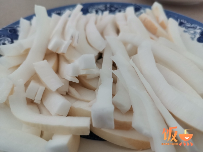 2.將椰肉切條。