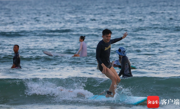 “海天一色,碧波蕩漾,這里的海真美……”17日下午,由海外傳播官、國內知名攝影師、航拍大咖、大V成員、記者編輯等組成的全媒體采訪團看到萬寧日月灣時感嘆道。隨后,嘉賓們在戒浪·不沖浪俱樂部換好裝備后,經過專業教練半個多小時的指導,北京周報社英文記者陶幸和其他網媒行成員抱著沖浪板,來到日月灣海邊嘗試沖浪。“這是人生中的第一次沖浪,本以為沖浪是非常困難的事,但是經過多次嘗試,我找到了技巧,踏著板沖起來了,真是太刺激了。希望有機會還來日月灣沖浪。”陶幸說。
