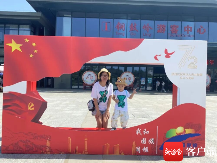 “每一個打卡展板都是一個流動的愛國畫框。這樣的設置讓游客在游覽山海美景的同時,能‘和國旗同框’,表達愛國之心,祝福祖國。”文昌市銅鼓嶺景區副總經理薛斌說。