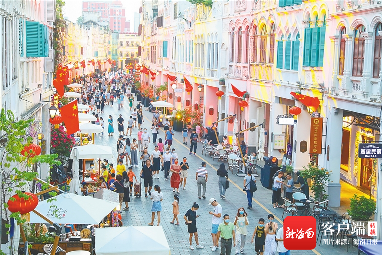 10月1日,海口騎樓老街,一幕幕喜慶主題畫面多姿多彩,眾多市民游客前來“打卡”。海南日報記者 張茂 攝