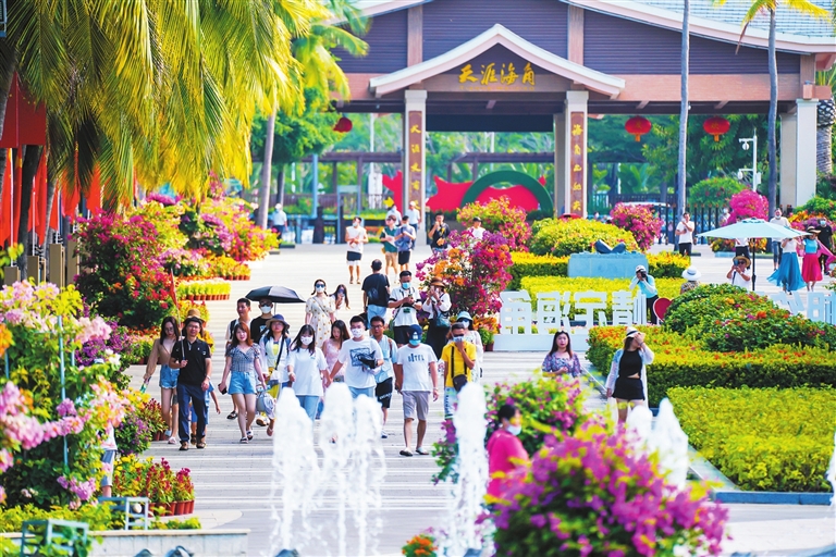 10月2日,三亞天涯海角游覽區游人如織。 三亞日報記者 陳聰聰 通訊員 童承東 攝