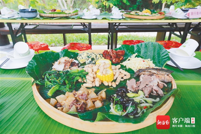 王下鄉(xiāng)“黎花里”文旅小鎮(zhèn)提供的黎族特色飯菜。記者 陳元才 攝