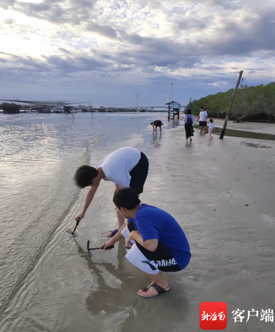 “帶孩子去趕海挖螺,挺過癮的,就像尋寶一樣,以后有機會我們還會來。”海口游客萬騰說。“今天去趕海,撿鴨蛋,還去村里摘了一些果子,這里比較原生態(tài),跟我們在城里的生活完全不一樣。”北京游客馮一晨收獲了太多的驚喜。