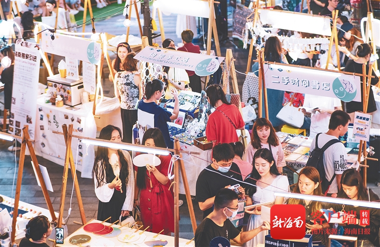 在創意市集感受潮流文化、在夜市品特色美食……10月6日晚上,4個小時內,從合肥市來海口旅游的游客桑女士一刻都沒閑著。她感慨道:“沒想到海口的夜生活竟然這么豐富。”