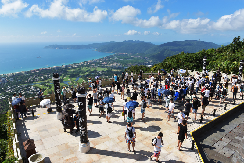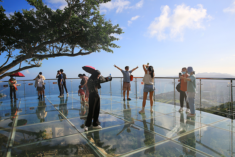 立冬當天正逢周日,亞龍灣熱帶天堂天氣晴好,驕陽似火。三五成群的游客漫步在雨林中賞花觀景,登高望遠,沐浴三亞溫暖的陽光,愉快地在三亞景區(qū)旅游度假。在景區(qū)中看到,景區(qū)熱門景點過江龍索橋、全海景玻璃棧橋及龍雕廣場上人來人往,熙熙攘攘,熱鬧非凡。眾多游客高興地暢游在景區(qū)中,樂享海南三亞四季如春的宜人環(huán)境。