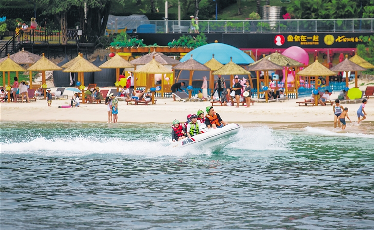 游客在三亞蜈支洲島旅游區體驗水上項目,感受海洋魅力。海南日報記者 武威 攝