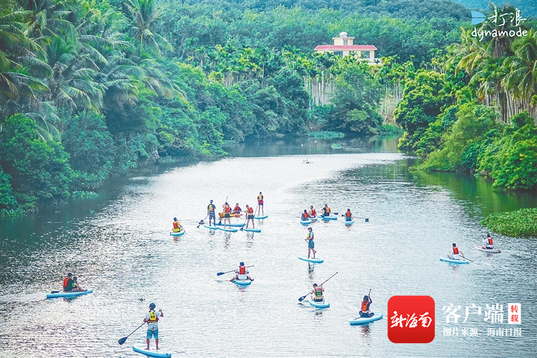 游客在太陽河體驗槳板。打浪海南沖浪俱樂部供圖