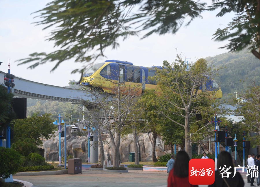 園區內還有集觀賞和交通兩大功能于一體的國內第一條淺海運行單軌觀光列車。運營環線全長3.3公里,四面環海不同景致,側窗全觀景玻璃結構,觀賞性極佳,游客們可以乘坐列車沿高架軌道跨海而行,眼見之處皆為大海最美的風景,穿梭于整個園區之間,跨越港池環視黎安內港,擁抱著來自全國各地游客體驗沿海“低空飛行”的喜悅。