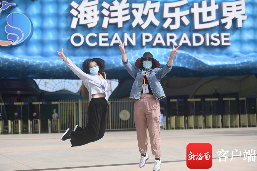 12月5日,參加“歡樂新海南·奮進自貿港”2021年全國重點網絡媒體海南行活動的全國重點網絡媒體記者編輯來到海南富力海洋歡樂世界度假區合影。記者沙曉峰攝
