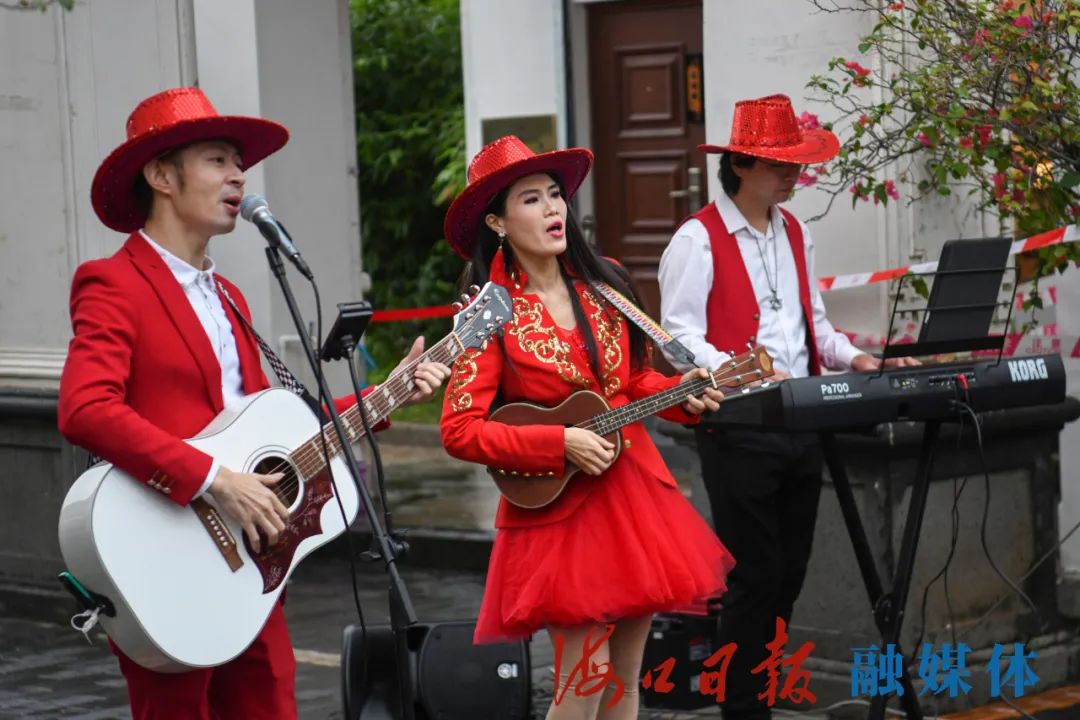 2月1日,樂隊在海口街頭進行精彩表演。