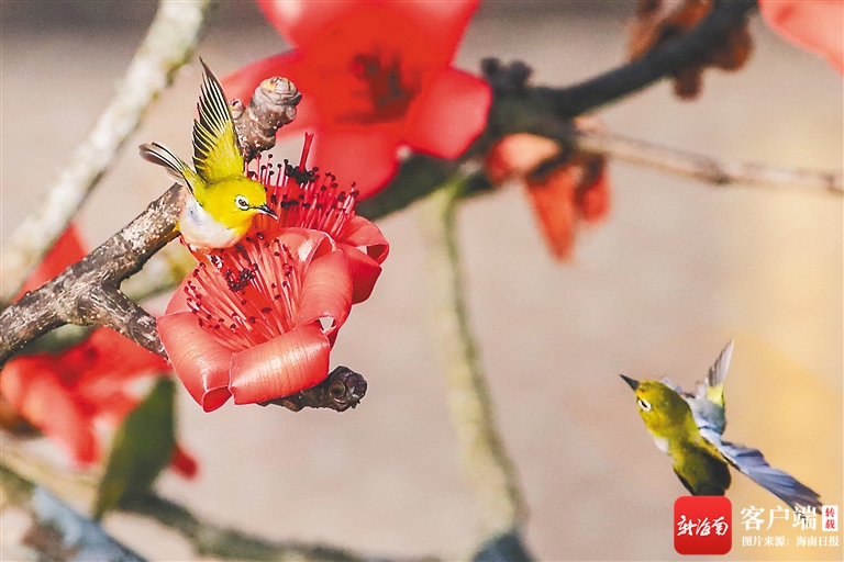 白沙木棉花開引鳥來。吳清炳 攝