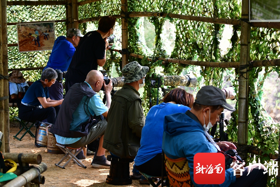 3月中旬,大批蜂虎飛臨海口,選擇在此筑巢安家,為了拍攝到蜂虎精彩美麗的瞬間,攝影師們抗著“長槍短炮”來此蹲守拍攝。有的一拍就是一整天,中午,周邊沒有吃飯地方,他們就自帶“干糧”。