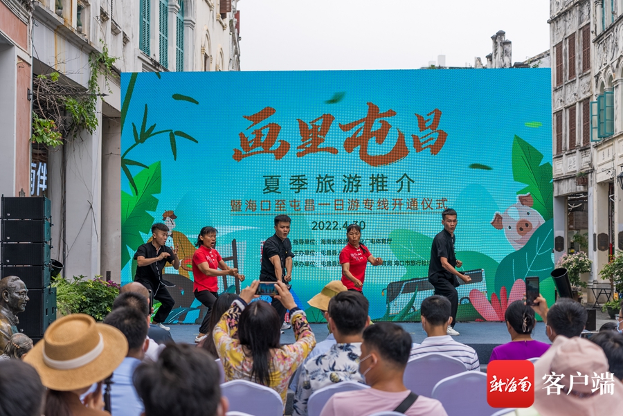 新海南客戶端、南海網、南國都市報4月30日消息(記者蘇靚)4月30日,充滿南洋風情的海口騎樓老街,迎來了一場屯昌夏季探尋之旅。屯昌旅游推介、線路圖片展、武術表演、擲骰子及抽獎贏禮品……在“五一”小長假首日,2022年“畫里屯昌”夏季旅游推介暨海口至屯昌一日游專線開通儀式于海口舉辦,為市民游客帶來了一場旅文盛宴。