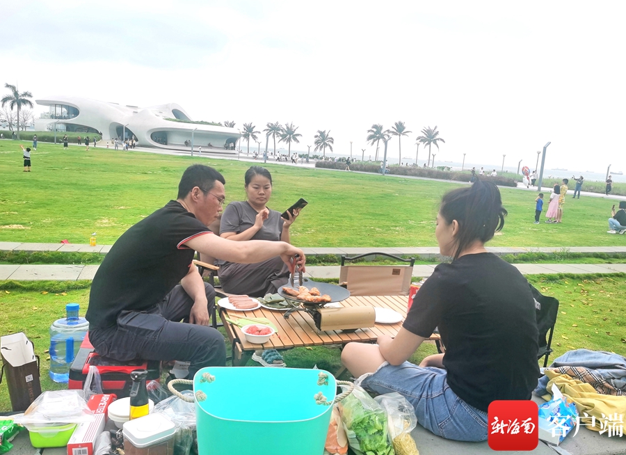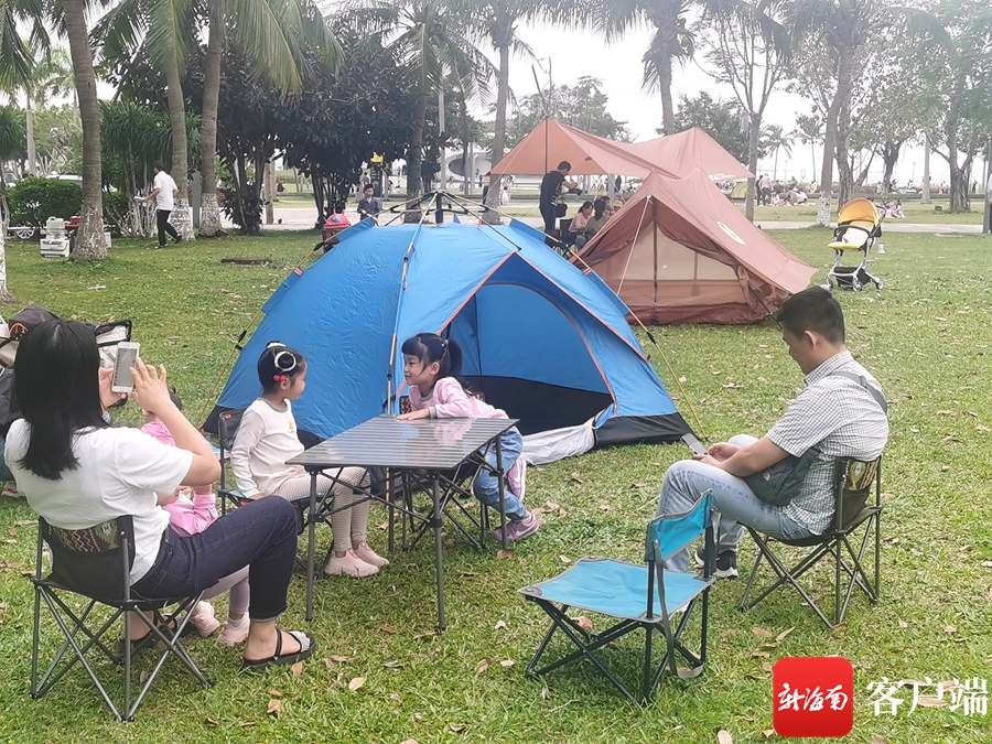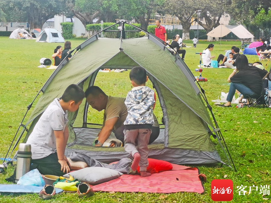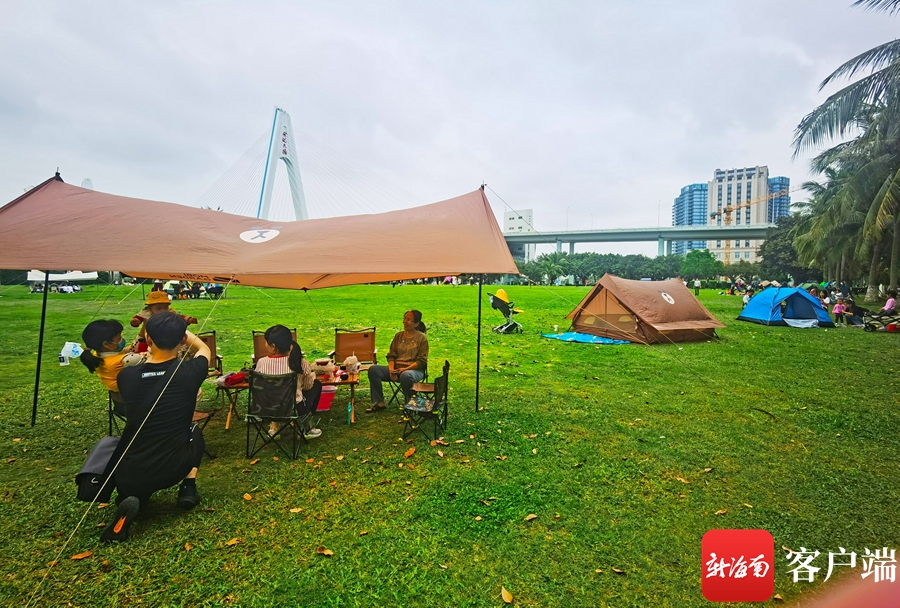 在海口世紀公園露營的人們。記者 汪承賢 攝