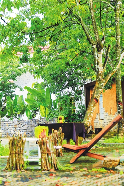 在林下,一處圓弧形的座椅層層疊疊,吸引了記者的注意。“這里是林下音樂舞臺,可以進行長桌宴,村里的許多活動都可以在此舉行。”在夏姐的觀念里,民宿是根植于鄉村的,要進行一定程度的回饋與共享。“空閑時,我會給村里的婦女上花藝課、禮儀課等,時間長了大家都認識我。”