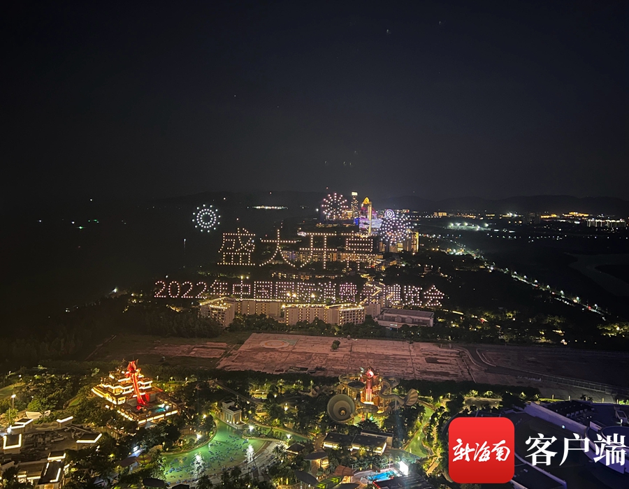 當晚20時,1000架無人機緩緩爬升,如螢火蟲在空中漫天飛舞,星星點點拼湊出首個表演畫面——2022年中國國際消費品博覽會盛大開幕。