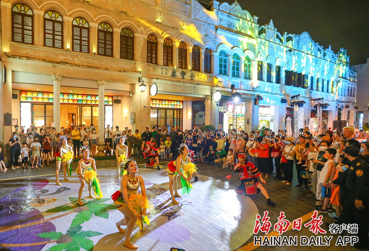 7月26日,“非”凡消博“遺”世獨立 讓世界看見海南美非遺特色展在海口龍華區(qū)騎樓老街舉行,市民游客與表演者一同跳起竹竿舞。海南日報見習記者 王程龍 攝