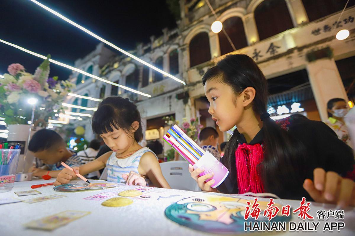 7月26日,“非”凡消博“遺”世獨立 讓世界看見海南美非遺特色展在海口龍華區(qū)騎樓老街舉行,小朋友們在制作瓊劇臉譜。海南日報見習記者 王程龍 攝
