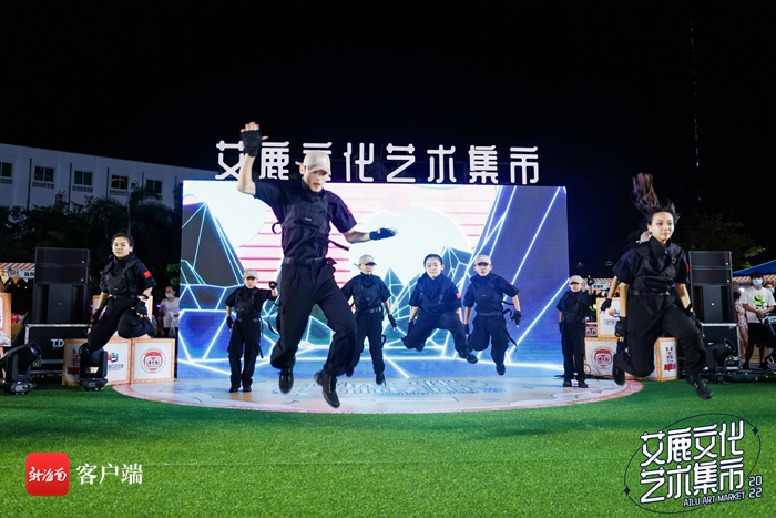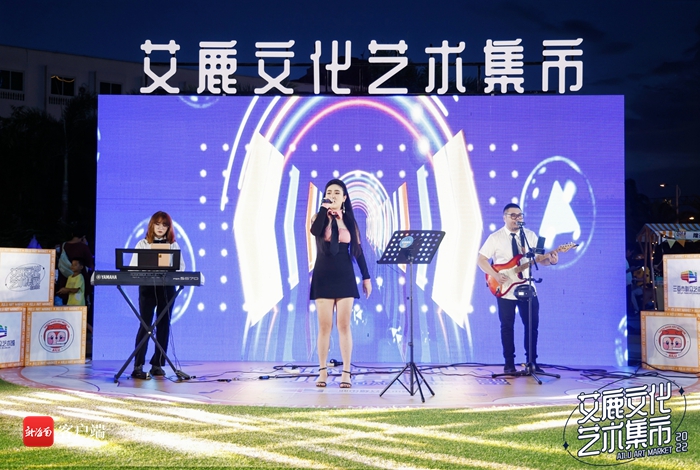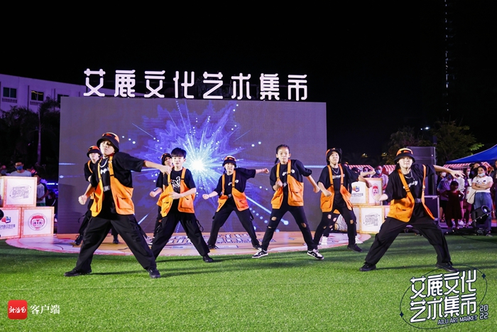中心舞臺區(qū)上,樂隊和街舞工作室?guī)淼谋硌萼巳既珗觯€有非遺項目傳承人演唱三亞疍歌和崖州民歌,讓全場觀眾浸潤在濃厚的傳統(tǒng)文化氣氛中。