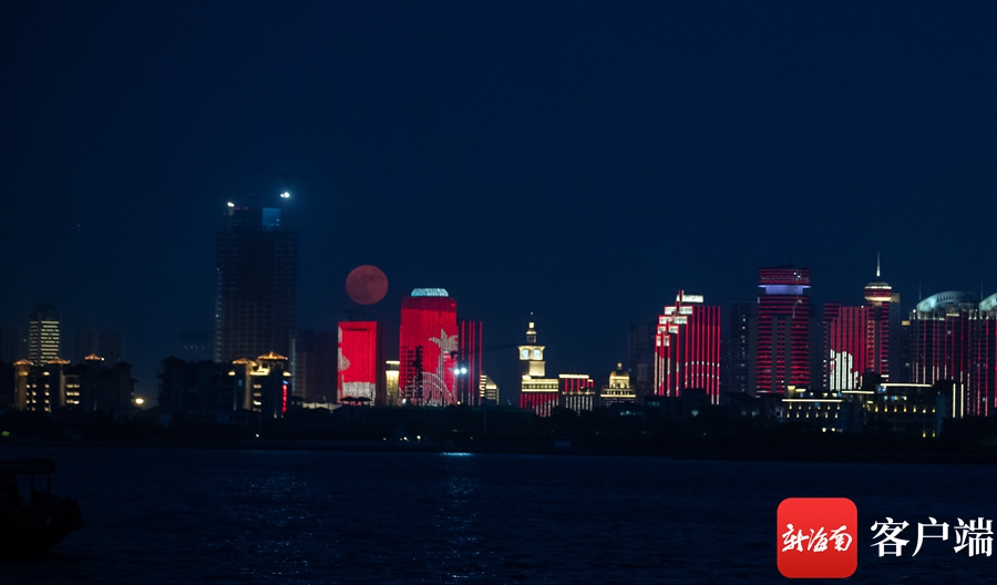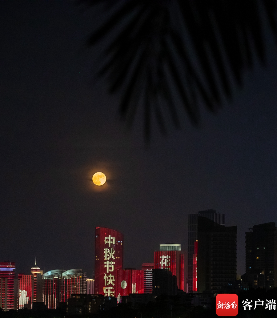 新海南客戶端、南海網、南國都市報9月10日消息(記者 劉洋)教師節、中秋節雙節之夜,一輪明月點靚海口夜空,成為今夜最美的風景。