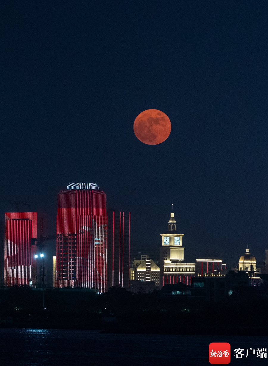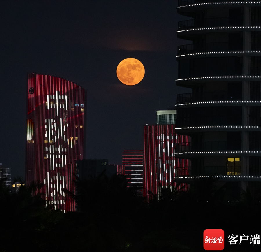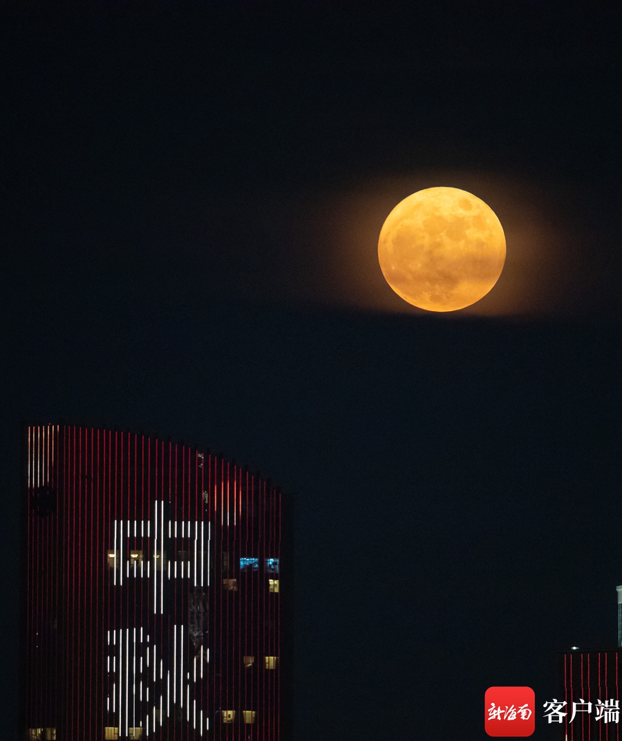 明月照亮海口夜空。記者 劉洋攝