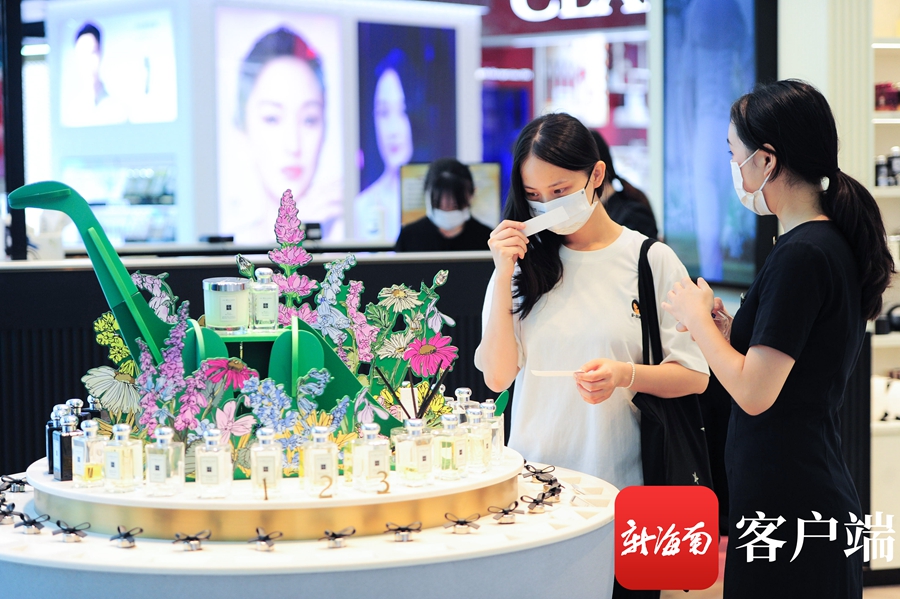 新海南客戶端、南海網、南國都市報9月21日消息(記者沙曉峰) 9月21日,游客在三亞國際免稅城選購免稅商品。當日,三亞國際免稅城恢復營業。