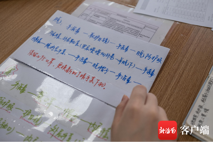 空乘記錄防護服的穿脫流程。記者 劉洋 攝