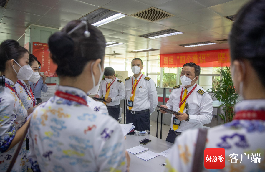 執(zhí)飛前,航班機組人員開準備會。記者 劉洋 攝
