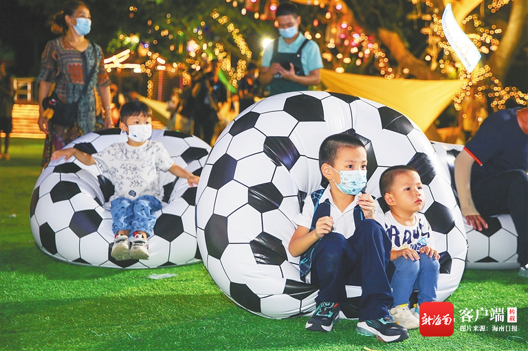 小朋友在三亞鹿回頭景區(qū)沉浸式體驗足球文化。海南日報記者 王程龍 攝