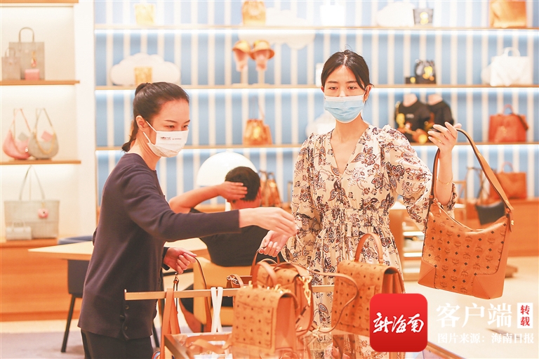 ?12月9日,在cdf三亞國際免稅城,游客在選購手提包。