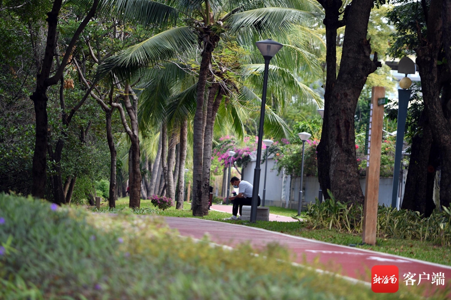 12月15日,市民在三亞臨春河東側綠道休息。記者 沙曉峰 攝