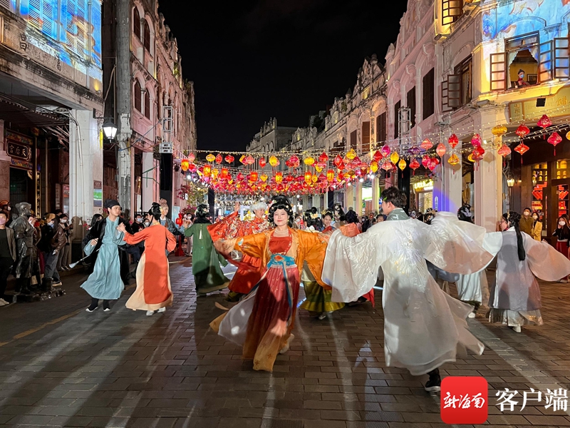 除了品味美食,現場還展現了包括瓊劇、制黎陶、黎錦、糖畫、草編等海南非遺、民俗,讓市民游客領略傳統非遺的獨特魅力。此外,漢服走秀、國風舞蹈快閃、漢服換裝體驗等國潮主題活動頗受年輕人青睞。