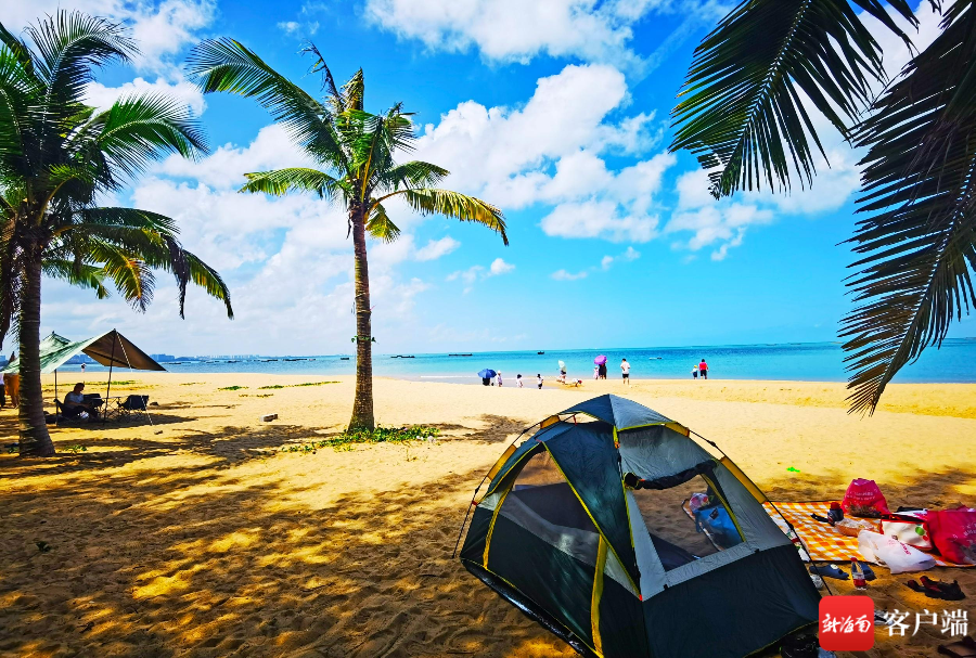 海口西海岸,市民游客在海邊支起帳篷。記者 汪承賢 攝(資料圖)