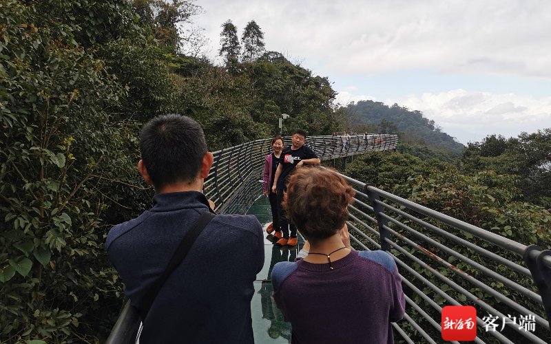 “我是從北京過來的,每年冬季都會在海南待一陣子,今天一大早,我們從澄邁來到瓊中百花嶺景區旅游,感覺這里的空氣非常好,以后我們還會常來。”1月23日中午,今年69歲的薛勝利帶著老伴兒、女兒、女婿,一家四口組團出游,來到百花嶺景區旅游,在景區樹梢棧道等景點,每到一個景點,他和妻子、女兒、女婿都會互相拍照打卡,一家四口其樂融融,羨煞旁人。