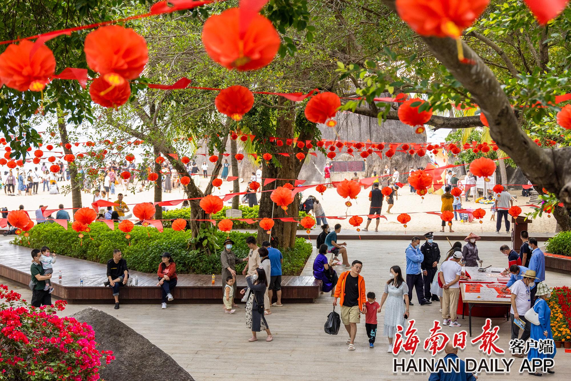 ?春節期間,三亞天涯海角景區張燈結彩,處處充滿了濃厚的“年味”。