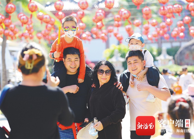 1月25日,家長帶著孩子在南山文化旅游區(qū)游覽。通訊員 陳文武 海南日報記者 王程龍 圖/文