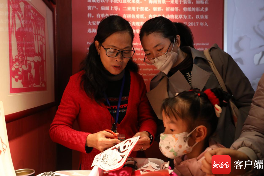 活動特邀椰雕、剪紙、炭畫非遺傳承人現(xiàn)場演繹,將動態(tài)的技藝表演融入瓊工坊靜態(tài)陳列,動靜結合。觀眾根據(jù)感興趣的非遺項目與傳承人展開學習互動,既可觀看非遺傳承人表演技藝,也可在其指導下學習參與制作剪紙、畫炭畫、雕刻椰殼等技藝,現(xiàn)場喜慶熱鬧。