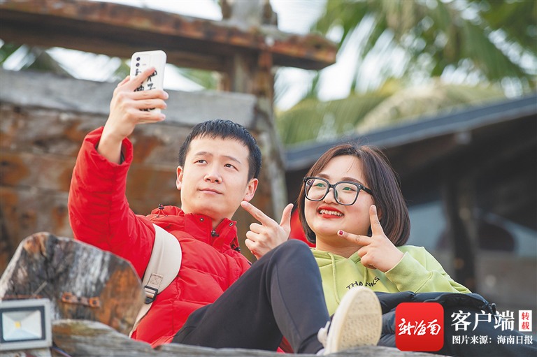 1月28日,避開旅游高峰的市民游客在博鰲游玩,圖為游客在“海的故事”主題餐吧自拍留影。海南日報記者 袁琛 攝