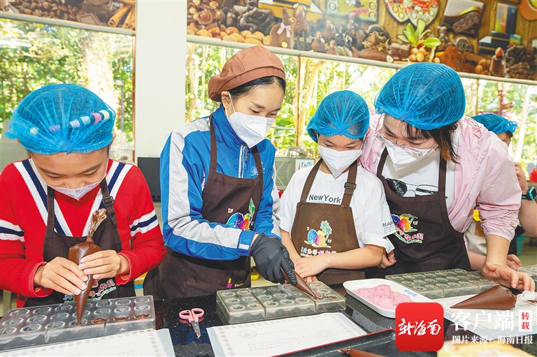 1月30日,在萬寧興隆熱帶植物園,家長帶著孩子一起學做巧克力。海南日報記者 袁琛 攝